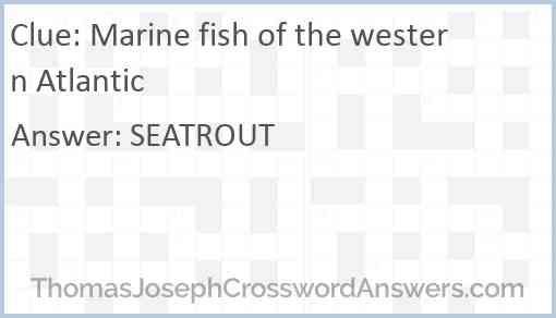 Marine fish Crossword Clue Answers, Crossword Solver This crossword clue Marine fish was discovered last seen in the August 1 2020 at the Wall Street Journal Crossword. The crossword clue possible answer is available in 7 letters. This answers first letter of which starts with S and can be found at the end of R. We think SNAPPER is the possible answer on this clue. Crossword clues for Marine fish