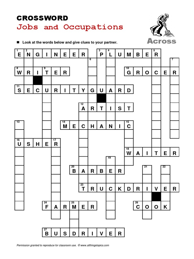 A Persons Regular Occupation Profession Crossword Clue and Solver ... The CroswodSolver.com system found 25 answers for a persons regular occupation profession crossword clue. Our system collect crossword clues from most populer crossword, cryptic puzzle, quick/small crossword that found in Daily Mail, Daily Telegraph, Daily Express, Daily Mirror, Herald-Sun, The Courier-Mail, Dominion Post and many others popular newspaper. Good friends; associates in occupation - crossword puzzle clues ... Today's crossword puzzle clue is a quick one: Good friends; associates in occupation. We will try to find the right answer to this particular crossword clue. Here are the possible solutions for "Good friends; associates in occupation" clue. It was last seen in Daily quick crossword. We have 1 possible answer in our database. Sponsored Links Occupation Crossword Clue Answers Occupation - Crossword Clue. Crossword Clue Last Updated: 02/08/2021. Below are possible answers for the crossword clue Occupation. 4 letter answer(s) to occupation. LINE (often plural) a means of communication or access; "it must go through official channels"; "lines of communication were set up between the two firms" OCCUPATION, PROFESSION crossword clue - All synonyms & answers All solutions for "Occupation, profession" 21 letters crossword clue - We have 1 answer with 8 letters. Solve your "Occupation, profession" crossword puzzle fast & easy with the-crossword-solver.com